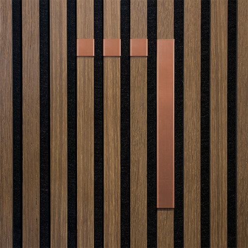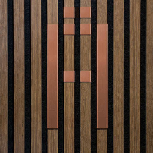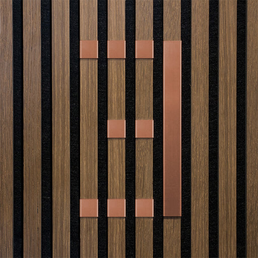 Bogstav til montering på akustikpaneler Samlet højde: 25 cm Passer til: 25 mm lamelbredde Materiale: Kobber Bogstav: X Montagevejledning: Sæ...