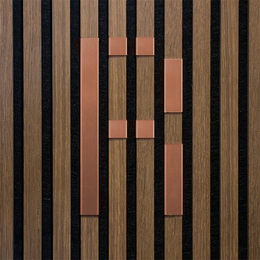 Bogstav til montering på akustikpaneler Samlet højde: 25 cm Passer til: 25 mm lamelbredde Materiale: Kobber Bogstav: H Montagevejledning: Sæ...