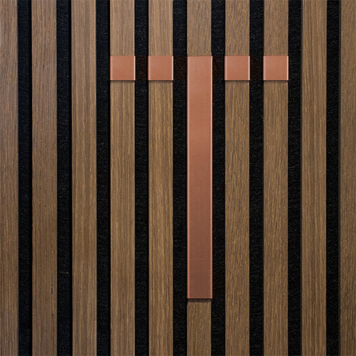 Bogstav til montering på akustikpaneler Samlet højde: 25 cm Passer til: 25 mm lamelbredde Materiale: Kobber Bogstav: T Montagevejledning: Sæ...