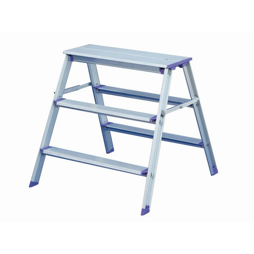 JUMBO proff dublo arbejdsbuk Materiale: Aluminium Trin: 3 Trinbredde: 8 cm Platformshøjde: 70 cm Topplade: 70x14 cm Bredde: 79 cm Vægt: 6,...