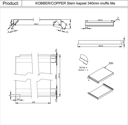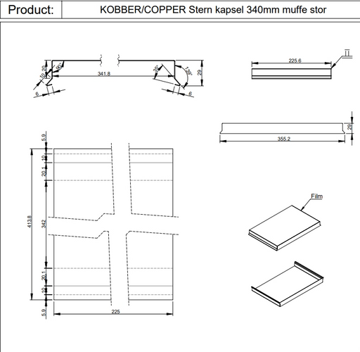 Vis detaljerSternkapsel muffe lille 340 mm – kobber – 225 mm