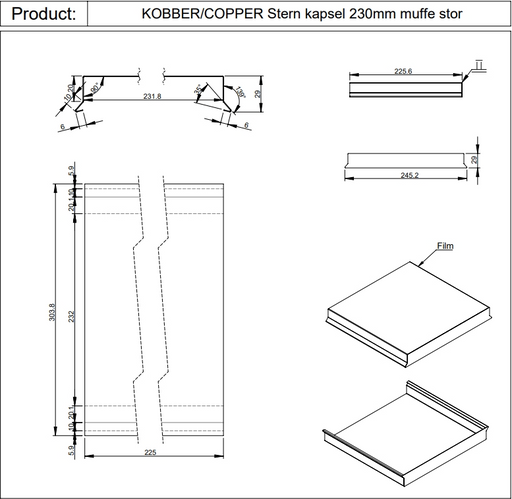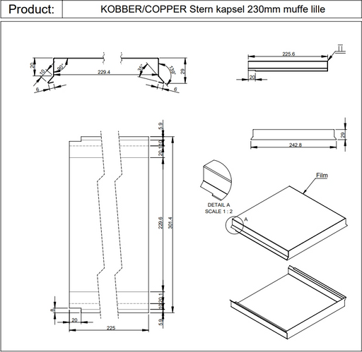 Vis detaljerSternkapsel muffe lille 230 mm – kobber – 225 mm