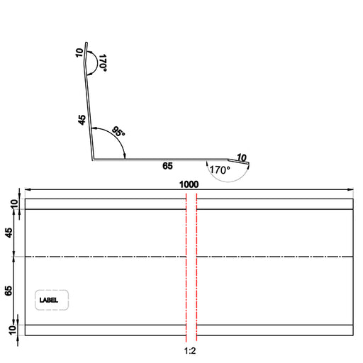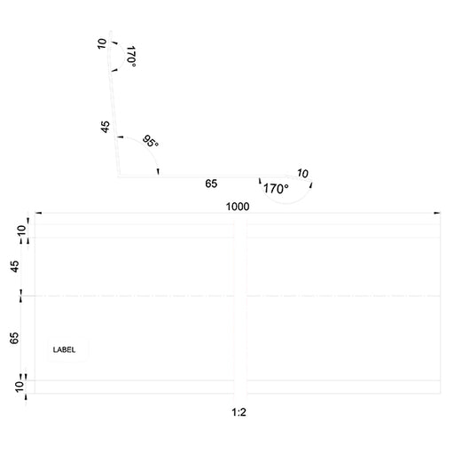 Facadeinddækning Længde: 1000 mm Bredde: 65 mm Højde: 40 mm Tykkelse: 0,6 mm Materiale: Aluminium Datablad Montagevejledning Befæsti...