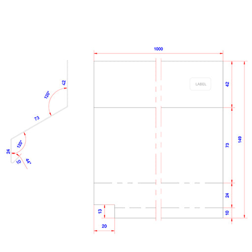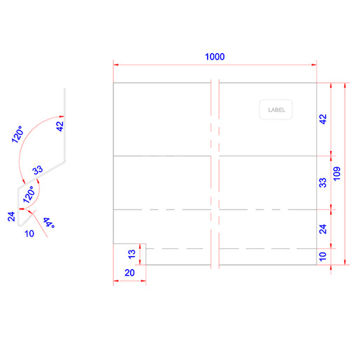 Facadeprofil 6B Længde: 1000 mm Bredde: 44 mm Højde: 24 mm Tykkelse: 0,6 mm Materiale: Aluminium Datablad Montagevejledning Befæstig...