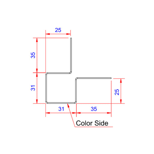 Hjørne udvendigt Materiale: Aluminium Farve: Sort RAL 9005 Mål: 35+25+31+31+25+35 mm Længde: 3 meter Tykkelse: 1 mm   Brugsvejledning ...
