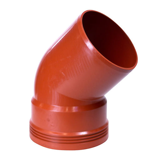 Bøjning med muffe til kloakrør Diameter: Ø160 mm Vinkel: 45 grader Farve: Rødbrun Materiale: Polypropylen (PP) Oliebestandig: Ja Med fast...
