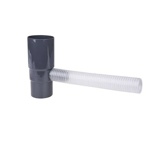 Vandudtag til nedløbsrør med flexslange Producent: Plastmo Farve: Grafit Materiale: Ren blyfri hård PVC Diameter: 75 mm Længde: 184 mm Slan...