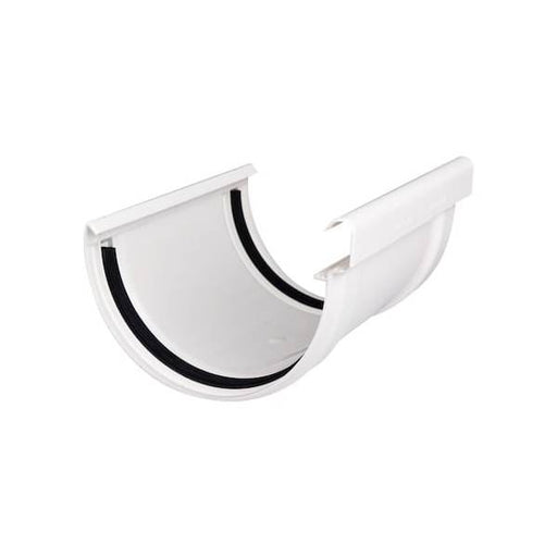 Samlestykke til samling af plast tagrender Producent: Plastmo Farve: Hvid Materiale: Ren blyfri hård PVC Størrelse: 125 mm Størrelse: 11