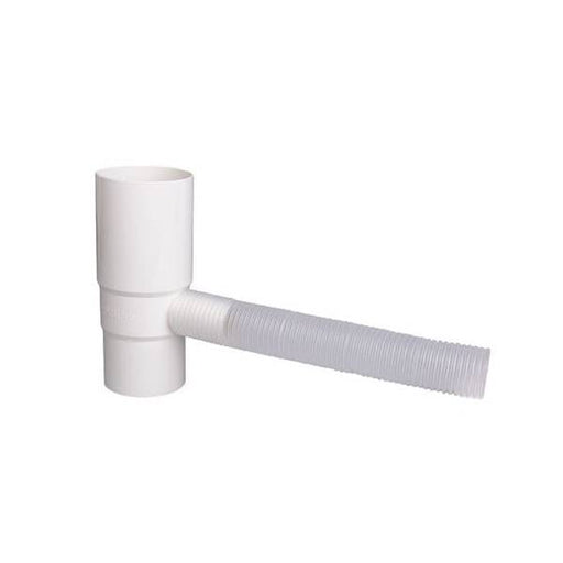 Vandudtag til nedløbsrør med flexslange Producent: Plastmo Farve: Hvid Materiale: Ren blyfri hård PVC Diameter: 75 mm Længde: 184 mm Slange...