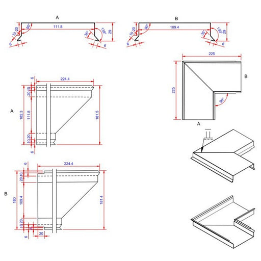 Sternkapsel 0,6x110x225 hjørne udvendigt Blank alu