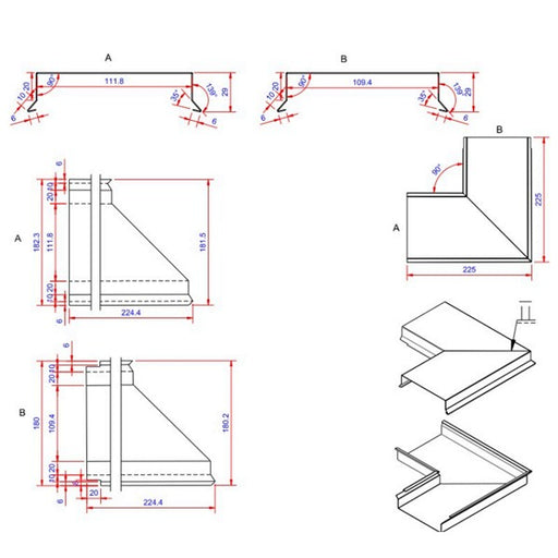 Sternkapsel hjørne Farve: Blank Længde: 225 Bredde: 110 Tykkelse: 0,6 Materiale: Aluminium 2S EN AW 1050 Type: indvendigt   Datablad B...