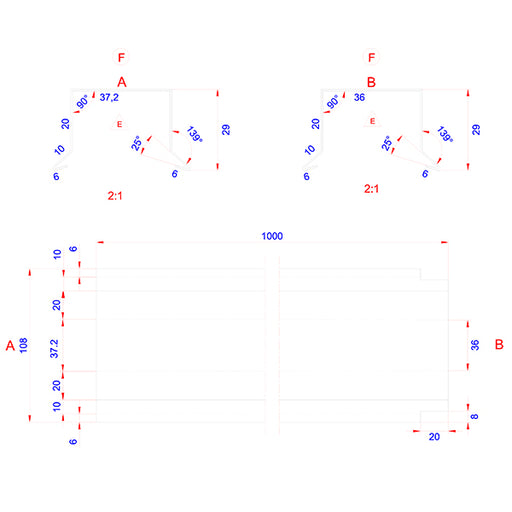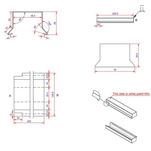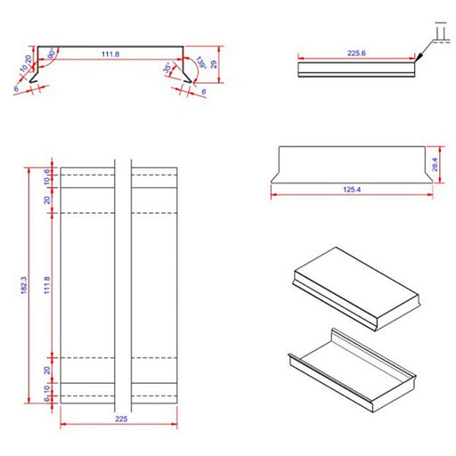 Sternkapsel 230 mm lige Længde: 1000 mm Bredde: 233 mm Højde: 30 mm Tykkelse: 0,6 mm Materiale: Aluminium   Montagevejledning Datablad ...