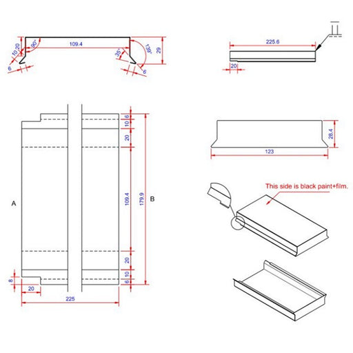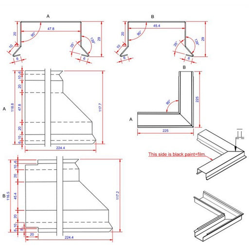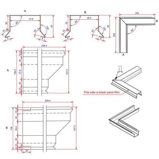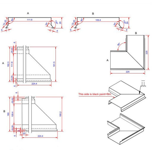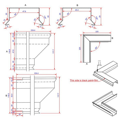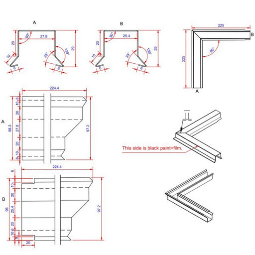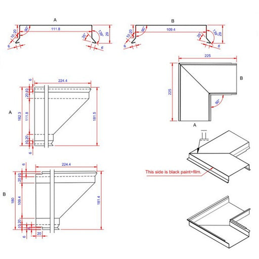 Sternkapsel hjørne Farve: Sort Ral 9005 Længde: 225 Bredde: 110 Tykkelse: 0,6 Materiale: Aluminium 2S EN AW 1050 Type: indvendigt   Dat...