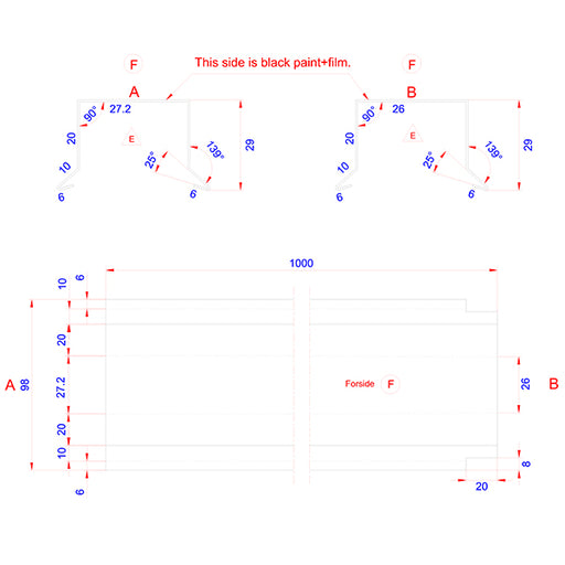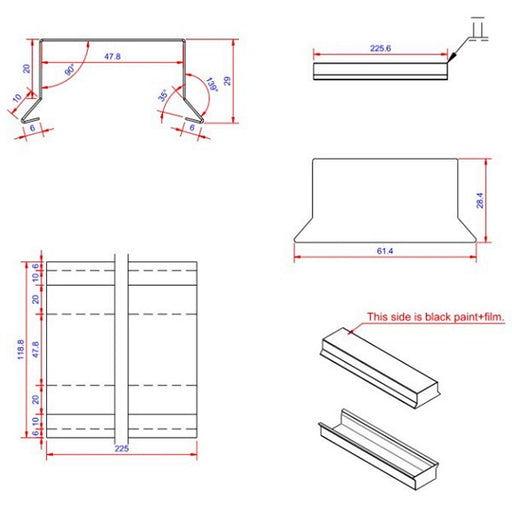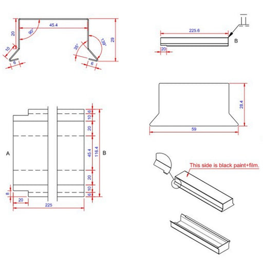 Stern rende - SORT Længde: 1000 mm Bredde: 90 mm Højde: 55 mm Tykkelse: 0,6 mm Materiale: Aluminium Farve: Sort   Montagevejledning Da...