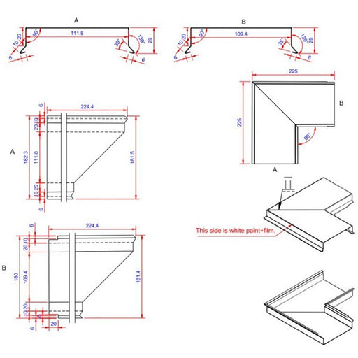 Sternkapsel hjørne Farve: Hvid Ral 9010 Længde: 225 Bredde: 110 Tykkelse: 0,6 Materiale: Aluminium 2S EN AW 1050 Type: udvendigt   Data...
