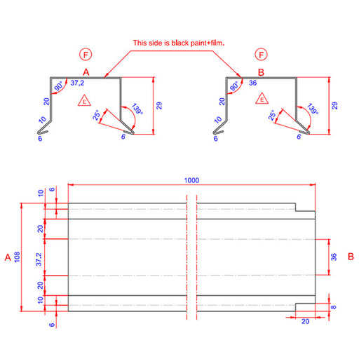 Sternkapsel 36 mm lige SORT alu 20x36x1000 mm