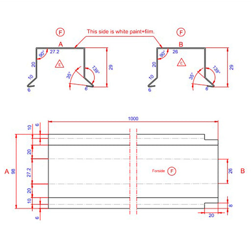 Sternkapsel lige Materiale: Aluminium Farve: Hvid RAL 9010 Mål: 6+10+20+27,2/26+20+10+6 mm Længde: 1 meter Tykkelse: 0,6 mm   Datablad ...