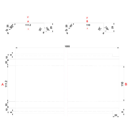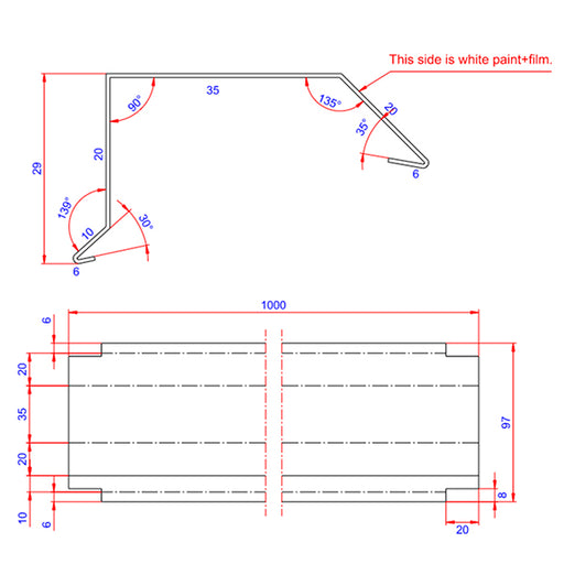 Sternkapsel lige Materiale: Aluminium Farve: Hvid RAL 9010 Mål: 6+10+20+111,2/110+20+10+6 mm Længde: 1 meter Tykkelse: 0,6 mm   Montagev...