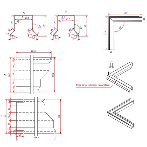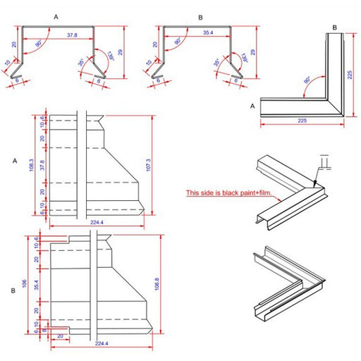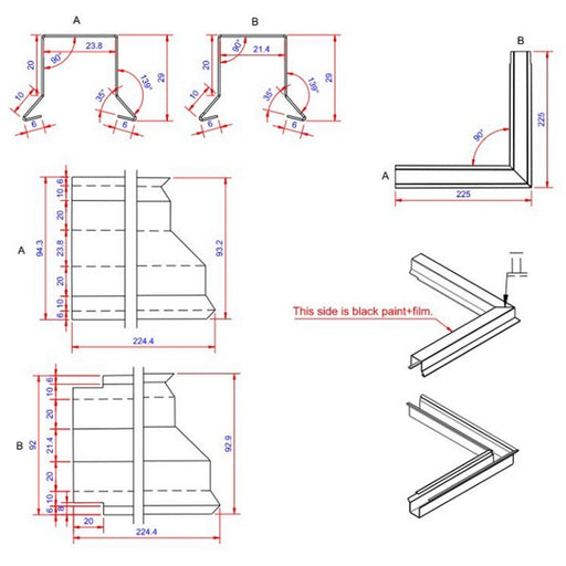 Sternkapsel hjørne Farve: Sort Ral 9005 Længde: 225 Bredde: 110 Tykkelse: 0,6 Materiale: Aluminium 2S EN AW 1050 Type: indvendigt Dat...