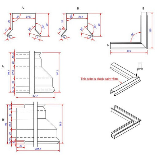 Sternkapsel hjørne Farve: Sort Ral 9005 Længde: 225 Bredde: 36 Tykkelse: 0,6 Materiale: Aluminium 2S EN AW 1050 Type: udvendigt Datab...