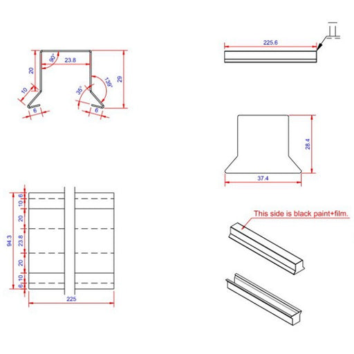 Sternkapsel hjørne Farve: Sort Ral 9005 Længde: 225 Bredde: 36 Tykkelse: 0,6 Materiale: Aluminium 2S EN AW 1050 Type: indvendigt Data...