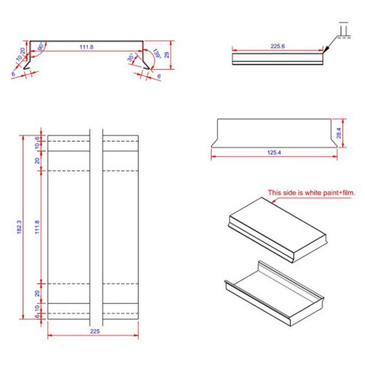 Sternkapsel lige Materiale: Aluminium Farve: Hvid RAL 9010 Mål: 6+10+20+111,2/110+20+10+6 mm Længde: 1 meter Tykkelse: 0,6 mm Montagev...