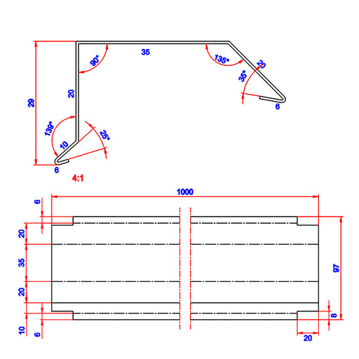 Vis detaljerSternkapsel 35 mm skrå alu 20x35x1000 mm