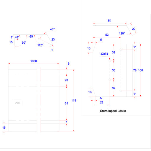 Sternkapsel 4B m/1 laske Længde: 1000 mm Bredde: 78 mm Højde: 20 mm Tykkelse: 0,6 mm Materiale: Aluminium Montagevejledning Datablad ...