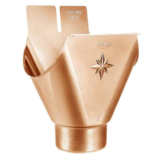 Tudstykke mellem nedløb og kvartrund tagrende Producent: VM ZincMateriale: KobberTagrende: 333 mmTommer: 12Nedløb: 76 mmForm: 1/4-rund