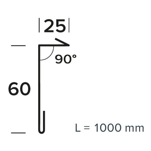 Løskant Sort Længde: 1000 mm Bredde: 57 mm Højde: 30 mm Tykkelse: 0,6 mm Materiale: Aluminium Farve: Ral 9005 Datablad Montagevejled...