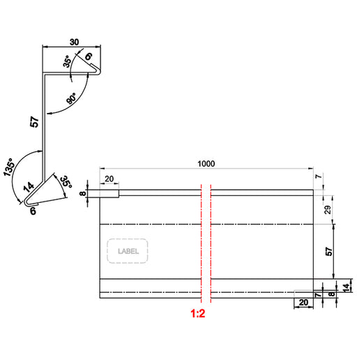 Løskant Længde: 1000 mm Bredde: 57 mm Højde: 30 mm Tykkelse: 0,6 mm Materiale: Aluminium Datablad Montagevejledning Befæstigelse ...