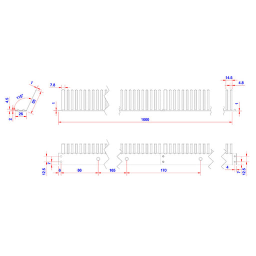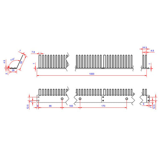 Sneglehegn 100 Længde: 1000 mm Bredde: 202 mm Højde: 60 mm Tykkelse: 0,6 mm Materiale: Sort aluminium