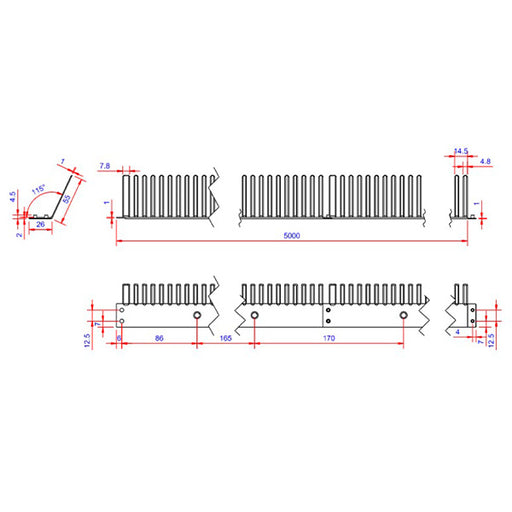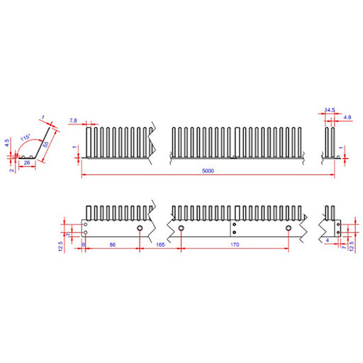 Sneglehegn 200 Længde: 1000 mm Bredde: 200 mm Højde: 60 mm Tykkelse: 0,6 mm Materiale: Aluminium