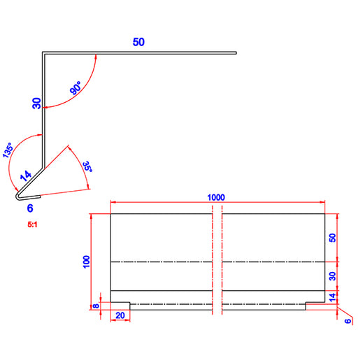 Skotrende 6" dobbelt m/1 db blindfals Længde: 1000 mm Bredde: 330 mm Højde: 80 mm Tykkelse: 0,6 mm Materiale: Aluminium Datablad Mont...