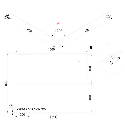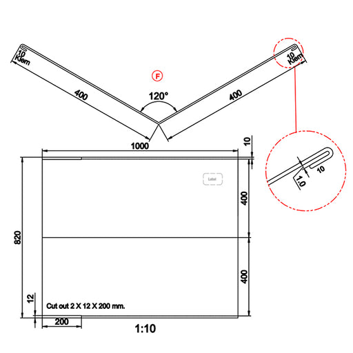 Skotrende 7" dobbelt m/1 db blindfals Længde: 1000 mm Bredde: 380 mm Højde: 80 mm Tykkelse: 0,6 mm Materiale: Aluminium Datablad Mont...
