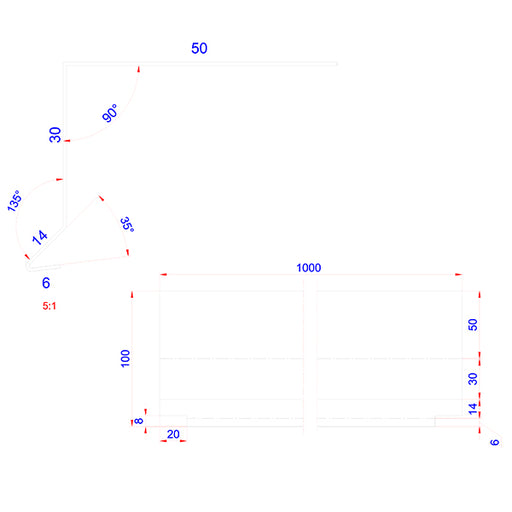 Skotrende dobbelt Dimension: 40x10x140x140x10x40 mm Længde: 1000 mm Tykkelse: 0,6 mm Materiale: Aluminium EN AW-3105 Overflade: Polyesterlak...