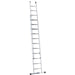Skydestigen har kraftige alu-vanger og 35 mm brede trin. For lettere udskydning er der montereret et tophjul foroven.