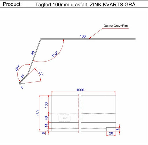 Vis detaljerTagfod 100mm u.asfalt KVARTS GRÅ ZINK