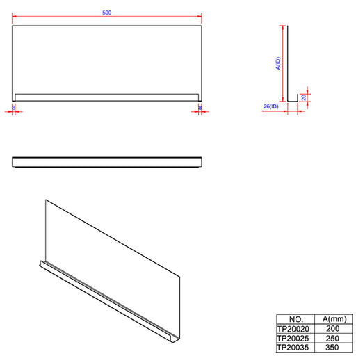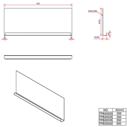 Sternplade Materiale: Aluminium Højde: 250 mm Dybde 26 mm Ombuk: 20 mm Længde: 500 mm Tykkelse: 0,6 mm Datablad Monteringsvejledning...