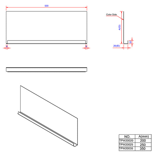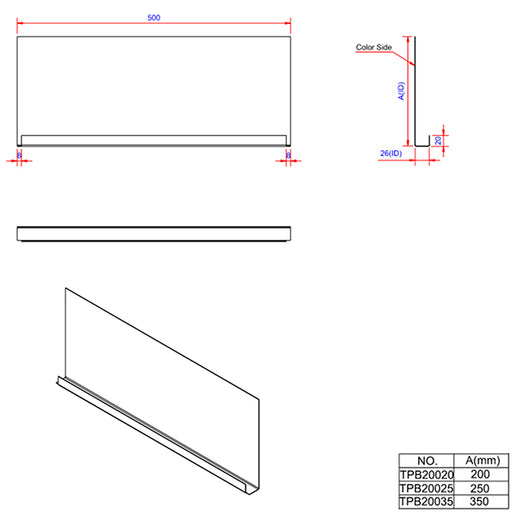 Sternplade Materiale: Aluminium Højde: 350 mm Dybde 26 mm Ombuk: 20 mm Længde: 500 mm Tykkelse: 0,6 mm Datablad Monteringsvejledning...