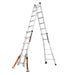 Dette gør stigen egnet til brug på ujævnt underlag med niveauforskelle, da støttebenene kan forskydes enkeltvis i længden.