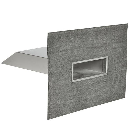Tagbrønd rektangulær til vandret montage, med plan flange Dimension: 500x100x400 mm Materiale rør/beskyttelsesring: Syrefast, rustfrit stål AIS...