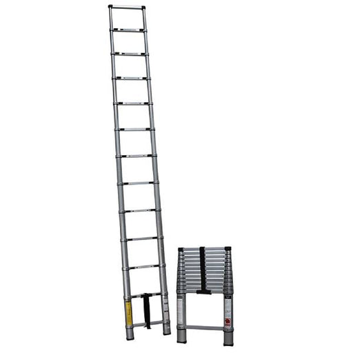JUMBO proff teleskopstige Materiale: Elokseret aluminium Højde: 380 cm Bredde: 50 cm Stigefodsbredde: 82 cm Transportmål: 0,91 meter Trin:...