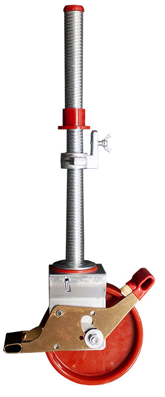 Løse Ø20 cm stilladshjul m/bremse til rullestillads. Højdejusterbar 30 cm spindel.