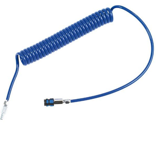 Spiralslange til trykluft Farve: Blå Længde: 5,0 meter Arbejdslængde: 4,0 meter Tilslutning: kobling/nippel Indvendigt: Ø 6,5 mm Udvendigt:...
