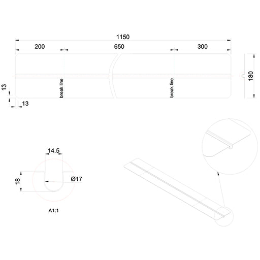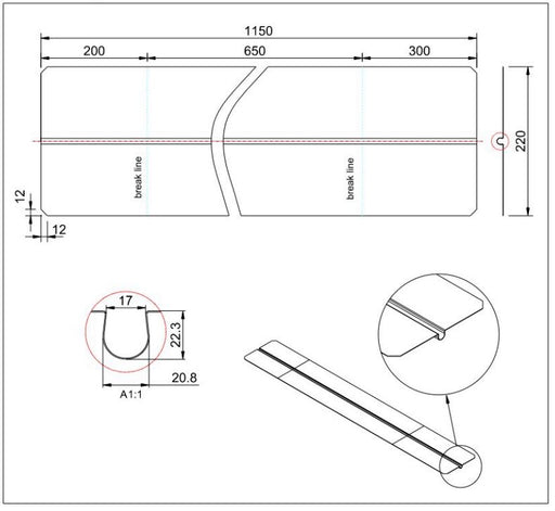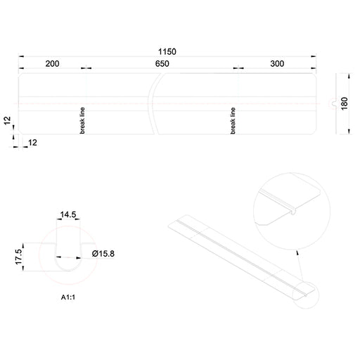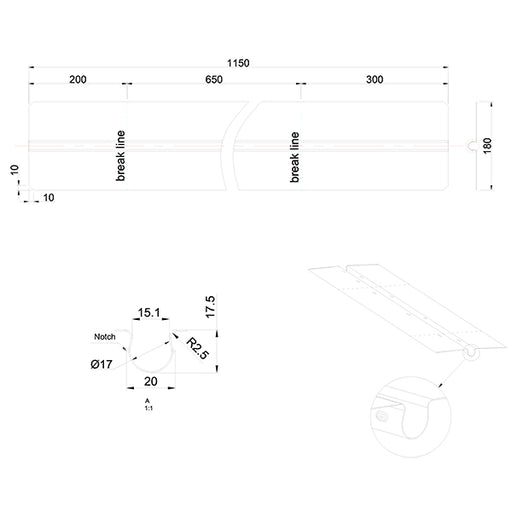 Vis detaljerVarmefordelingsplade alu 0,3x180x1150 mm t/Ø16 mm rør uden låsetap