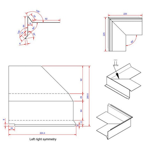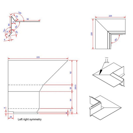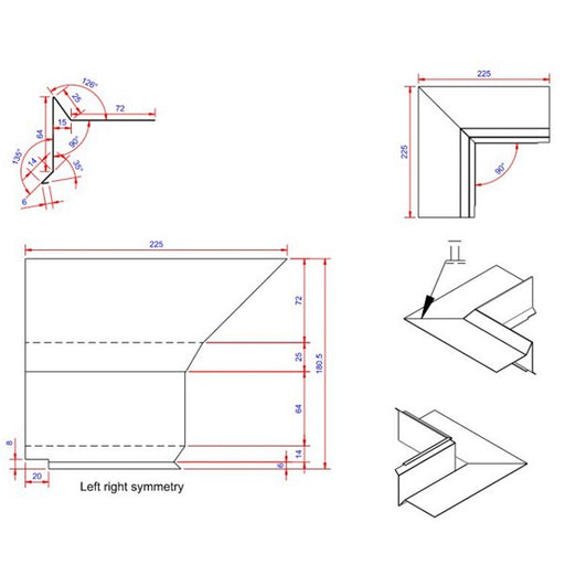 Vindskede hjørne Farve: Blank Længde: 225 Bredde: 100 Tykkelse: 0,6 Materiale: Aluminium 2S EN AW 1050 Type: indvendigt Datablad Bef...