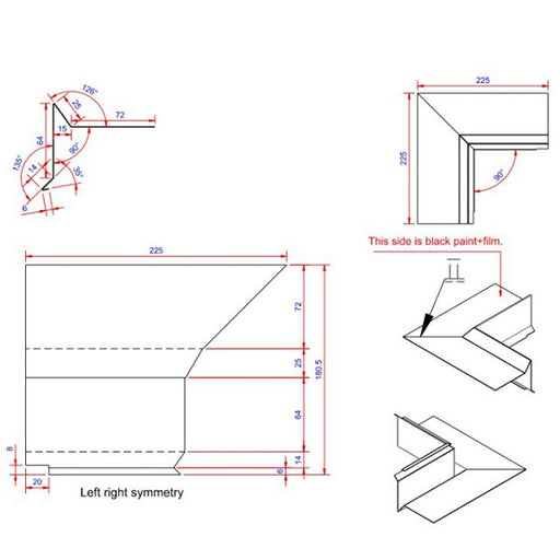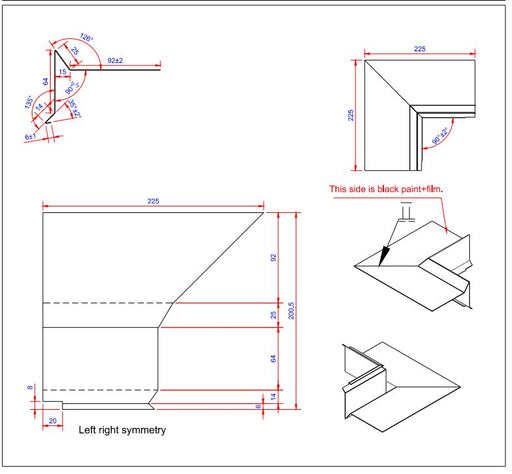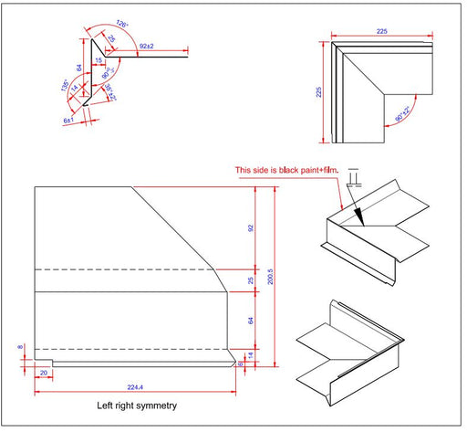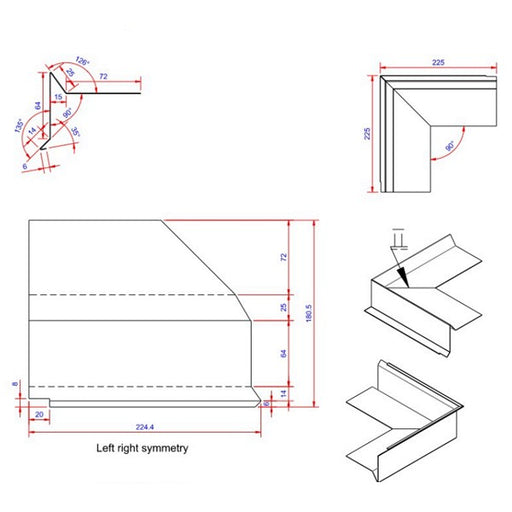 Vindskede hjørne Farve: Sort Ral 9005 Længde: 225 Bredde: 100 Tykkelse: 0,6 Materiale: Aluminium 2S EN AW 1050 Type: udvendigt Databl...