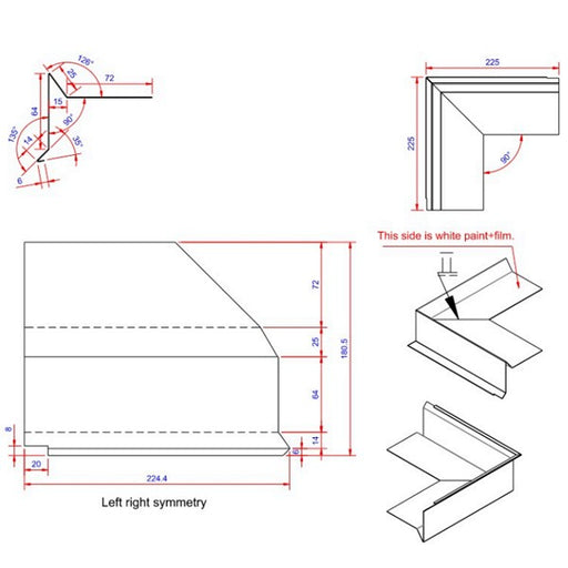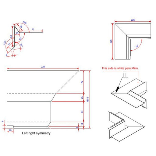 Vindskede hjørne Farve: Hvid Ral 9010 Længde: 225 Bredde: 80 Tykkelse: 0,6 Materiale: Aluminium 2S EN AW 1050 Type: indvendigt Databl...