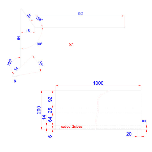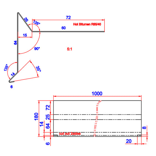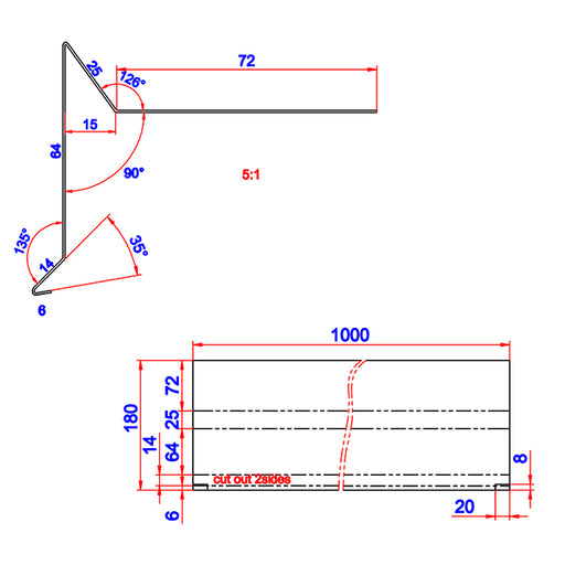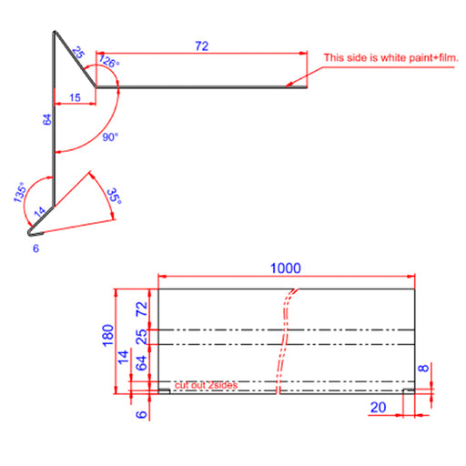 Vis detaljerVindskede 18, 100 mm flange alu RAL 9005 0,6x75x20x100x1000 mm uden hjørneklip